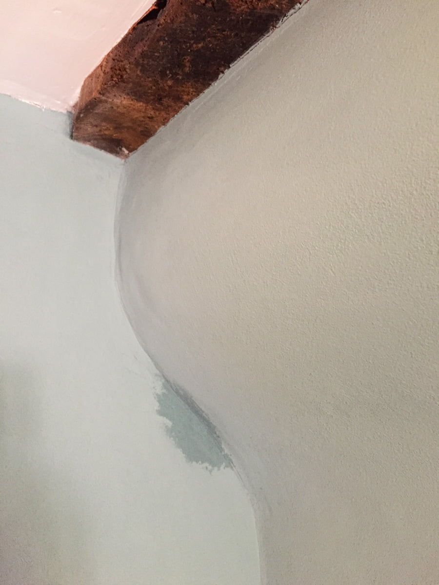 Our first morning waking up in the house and we were both still super excited and on a real high. It’s taken tens of thousands of pounds and a year of bloody hard work from everyone involved to get here, with everyone going the extra mile to make this place extra beautiful and extra special, everyone that is, except for one. And that one person continues to f*** it up for us even now and we fired him over 6 months ago. This morning, after having used our new bathroom for the first time (we hadn’t even used the toilet until we moved in last night), we wake up to this… A damp patch is appearing in the corner of the sitting room wall where water is seeping through from the soil pipe that is buried in the wall!!! WTF!?!