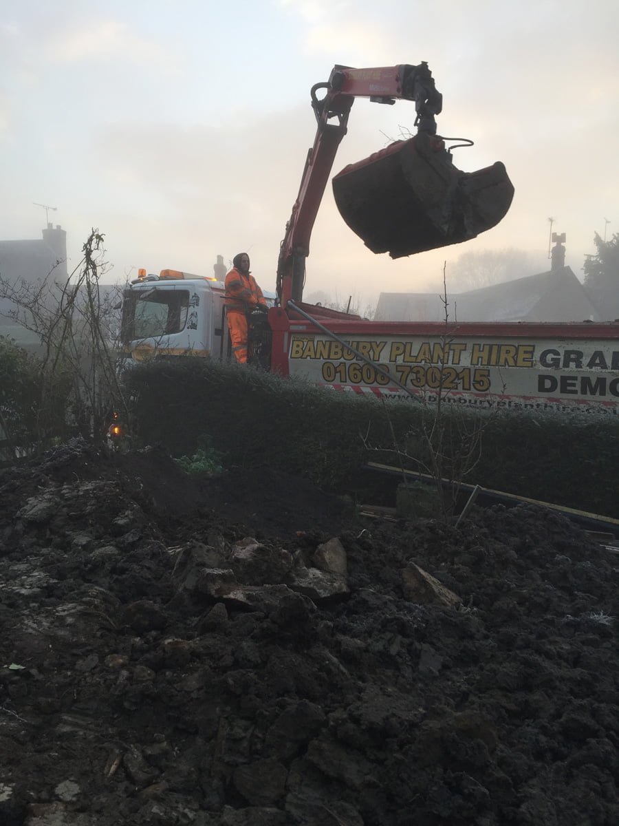 7.30am as I was getting out of the shower, I heard a very large lorry outside. The grab lorry was here to remove all the clay that we have dug out of the trench. Good job I was up! The walk way that George had constructed up the mud mountain yesterday so he could make… Continue reading The giant claw