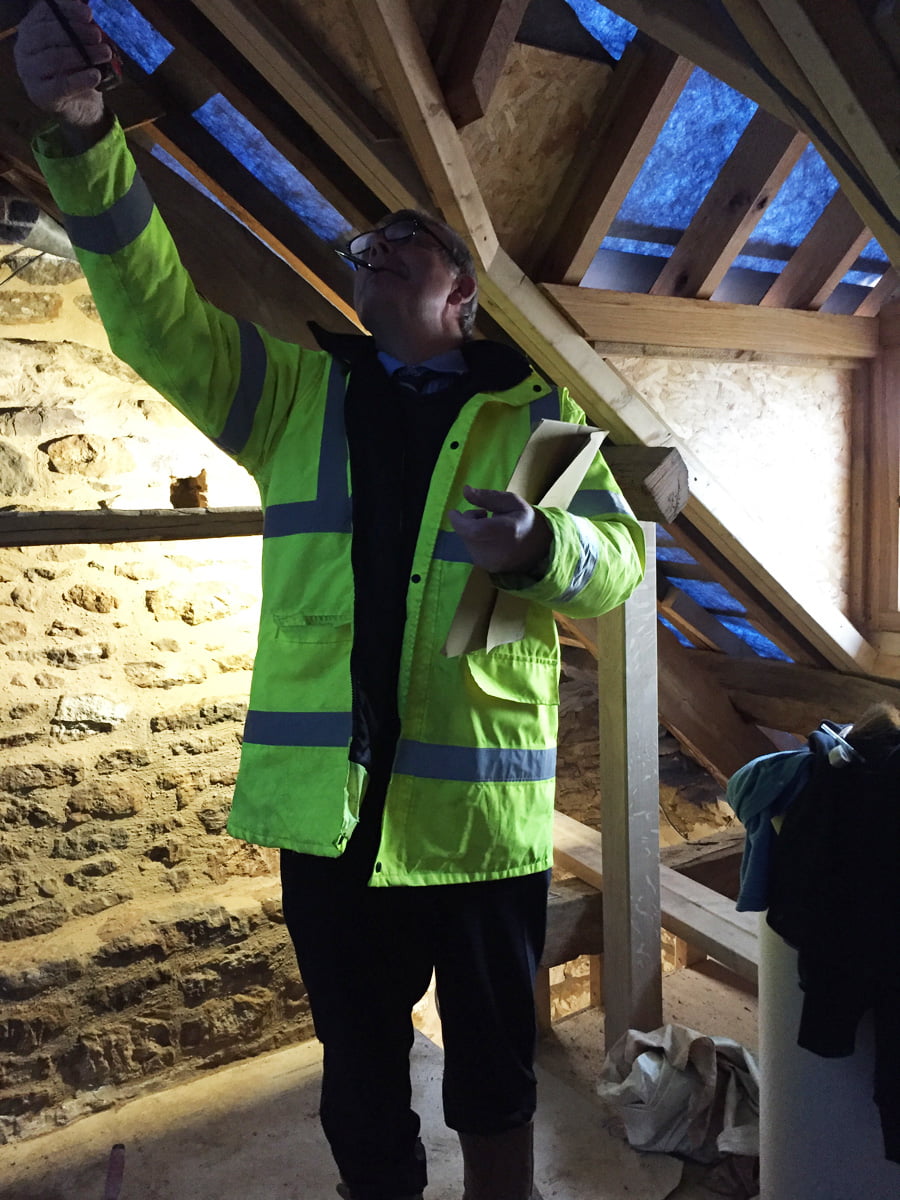 A busy day with more progress, help and a visit from our structural engineer, who was very impressed with how we are getting on and very complementary about the house. Martin is measuring up the dormers for a report to Building Control. They are worried about our (over engineered, solid oak) dormers ‘spreading’ (like our… Continue reading Definite progress