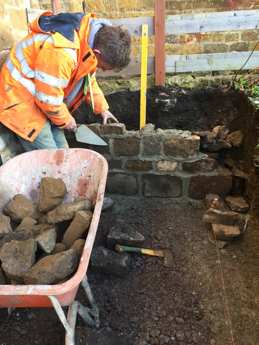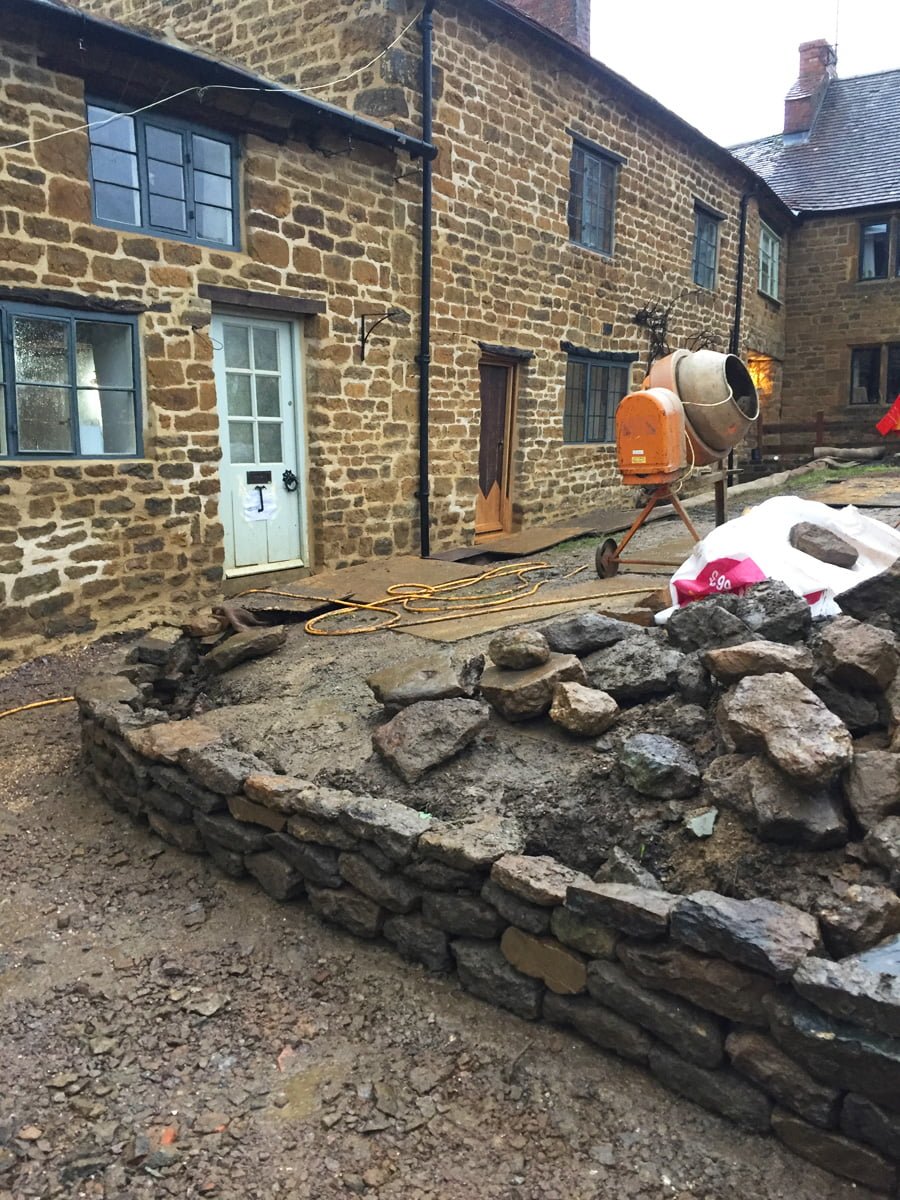 Tom is building the retaining wall for the front garden, another exciting point as the garden will look less like a building site and more like a garden again. A huge piece of the Hornton blue that Tom cut yesterday. You can see how hard it is from the marks made by the angle grinder.… Continue reading Build a wall