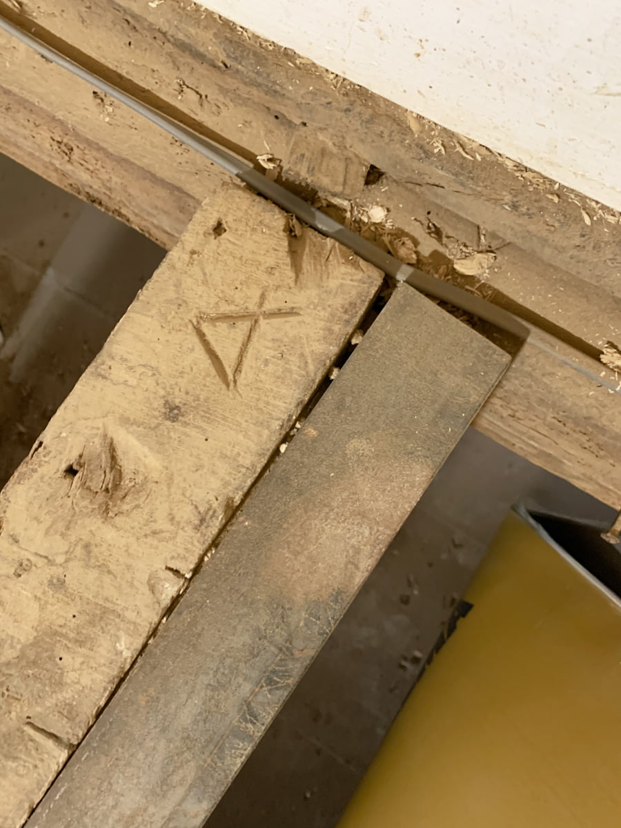 Dan pointed out some carpenters’ marks on the joists in the bathroom. None of us had spotted these before, but they have been covered with boards since the floor was taken up so we wouldn’t have seen them. We are so happy to have found these. Carpenters’ marks were created with a race knife and… Continue reading Carpenters’ marks & more old newspaper